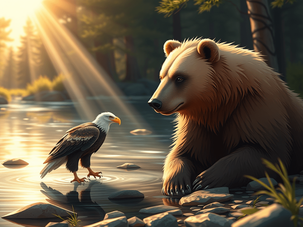 One day, a young eagle approached the bear. ‘I want to understand the meaning of Truth,’ the eagle said. The bear nodded and led the eagle to the river.